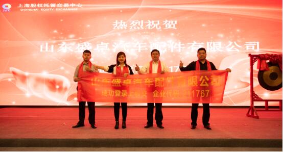 2021年4月21日,随着一阵挂牌锣声响起,经上海朗荣投资管理有限公司推荐, 成功推荐山东盛卓汽车配件有限公司,企业代码: 211767登陆上海股权交易中心股权报价系统,顺利迈出与资本市场对接的第一步。企业领导人前来参加挂牌仪式。